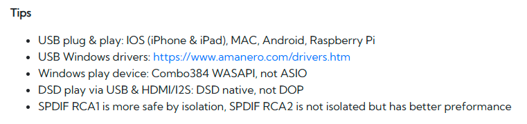 - USB Windows drivers: https://www.amanero.com/drivers.htm